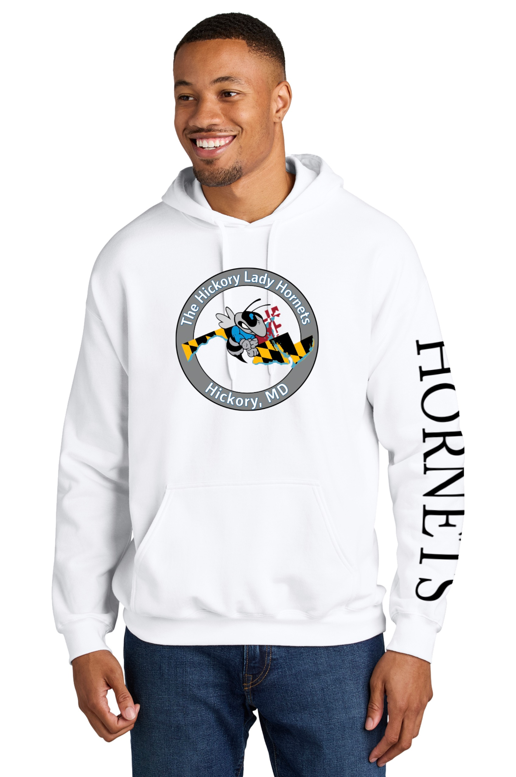Lady Hornets Pullover Hoodie Sweatshirt – Alt Logo – White